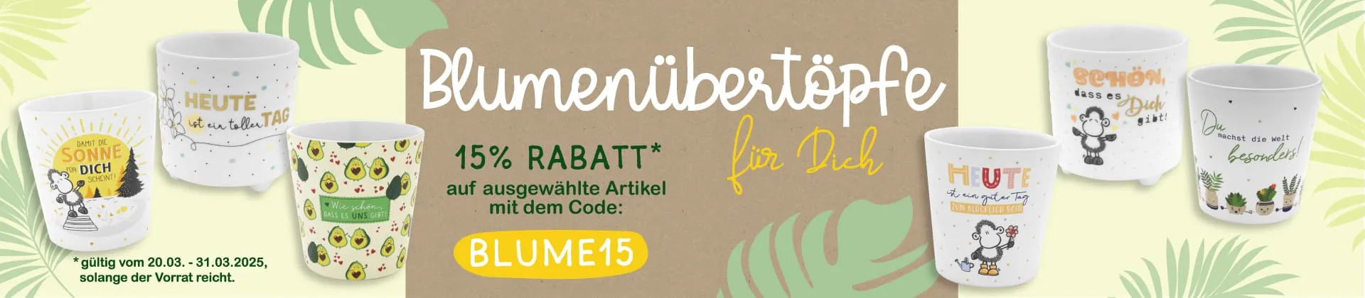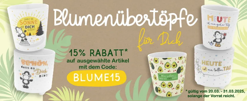 Und das Beste: Vom 20.03 bis 31.03 erhältst du mit dem Rabattcode BLUME15 ganze 15% Rabatt auf ausgewählte Artikel! Nutze diese Gelegenheit, um deine Wohnräume mit einzigartigen floralen Akzenten aufzuwerten und dir selbst oder deinen Liebsten eine Freude zu machen.
