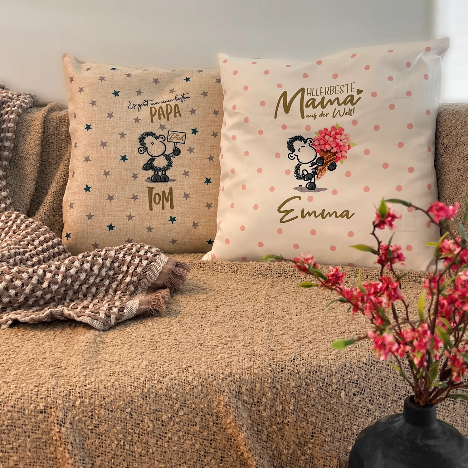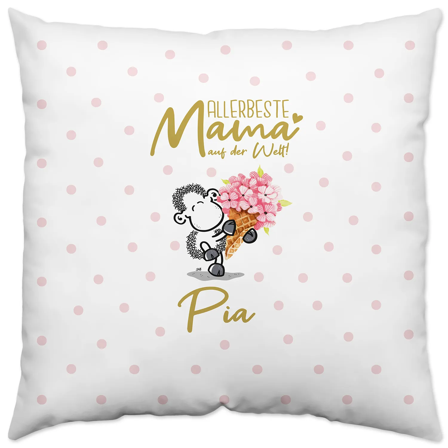 Es gibt nur eine allerbeste Mama - Deine! Mit dem Namen Deiner Mama beschriftet ist dieses Kissen das optimale Geschenk zum Muttertag oder zum Geburtstag. Das stylishe Punktemuster und das typische sheepworld-Schäfchen mit Eisblumenstrauß machen das Kissen zu etwas ganz Besonderem.