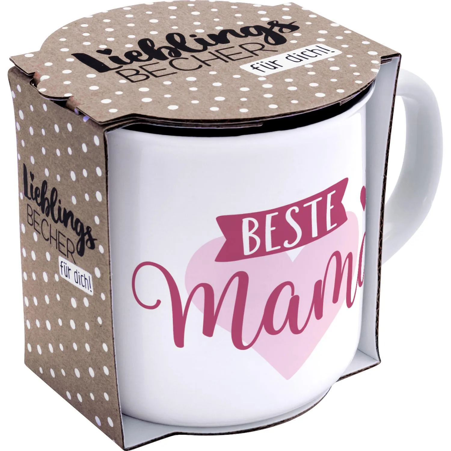 Deine Mama ist eindeutig die beste Mama? Dann ist dieser tolle Becher im trendigen Emaille-Look genau das richtige Geschenk. Die pfiffige Geschenkbanderole unterstreicht das originelle Design dieses einzigartigen Trinkgefäßes.